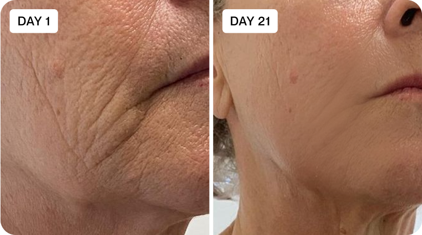 Muchas mujeres notan una diferencia visible en la firmeza de la parte inferior del rostro y la profundidad de las líneas de expresión en los primeros 21 días de uso. Para obtener mejores resultados, use RenewaLift 5 minutos al día en la zona de la boca, la parte inferior de las mejillas y la mandíbula. Sentirá una renovación revitalizante después de la primera sesión, y los resultados más profundos se observarán con el tiempo con el uso constante, como el ejercicio para los músculos faciales.